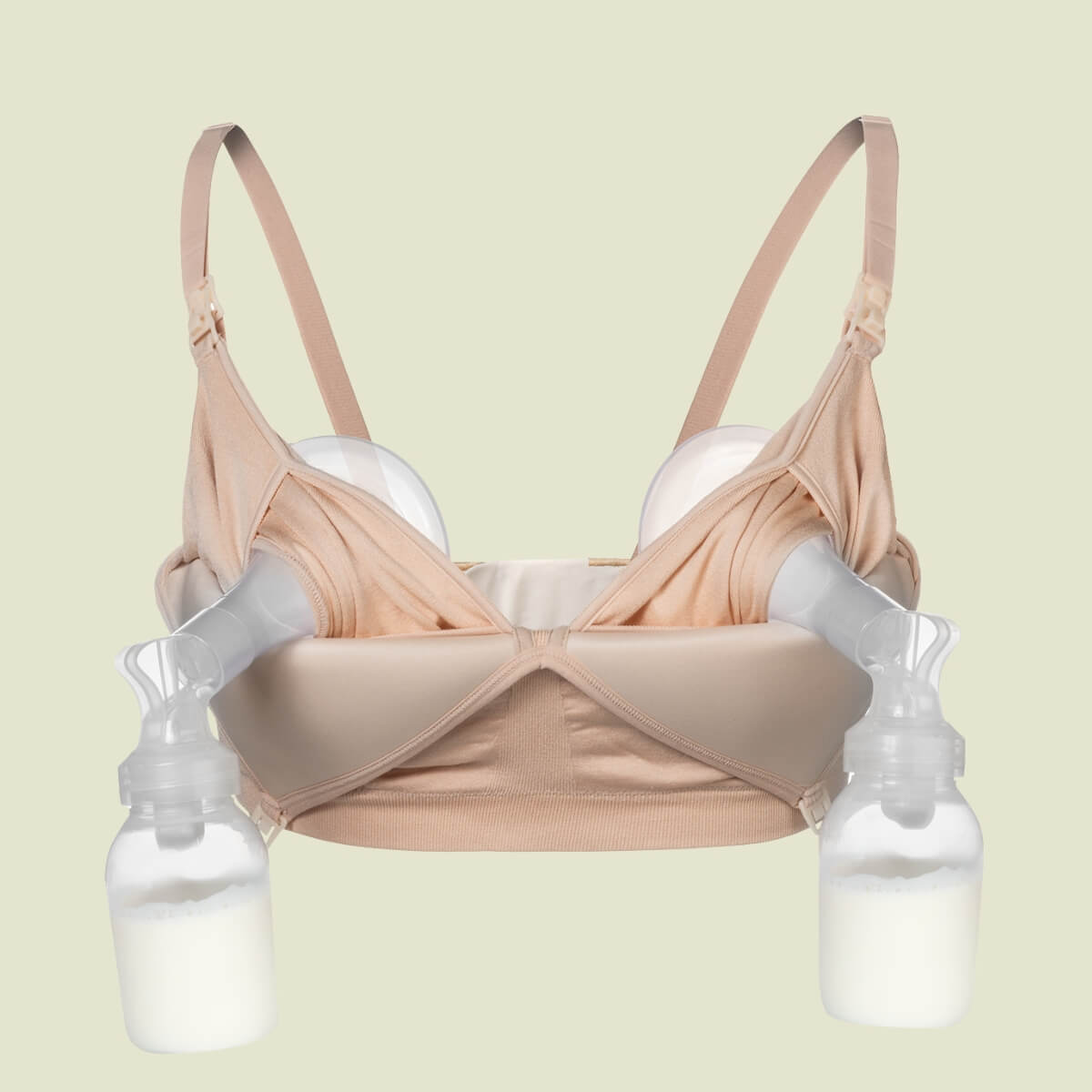 - Pump support layer with no rub "X" overlap for ideal support of pump & expressed milk